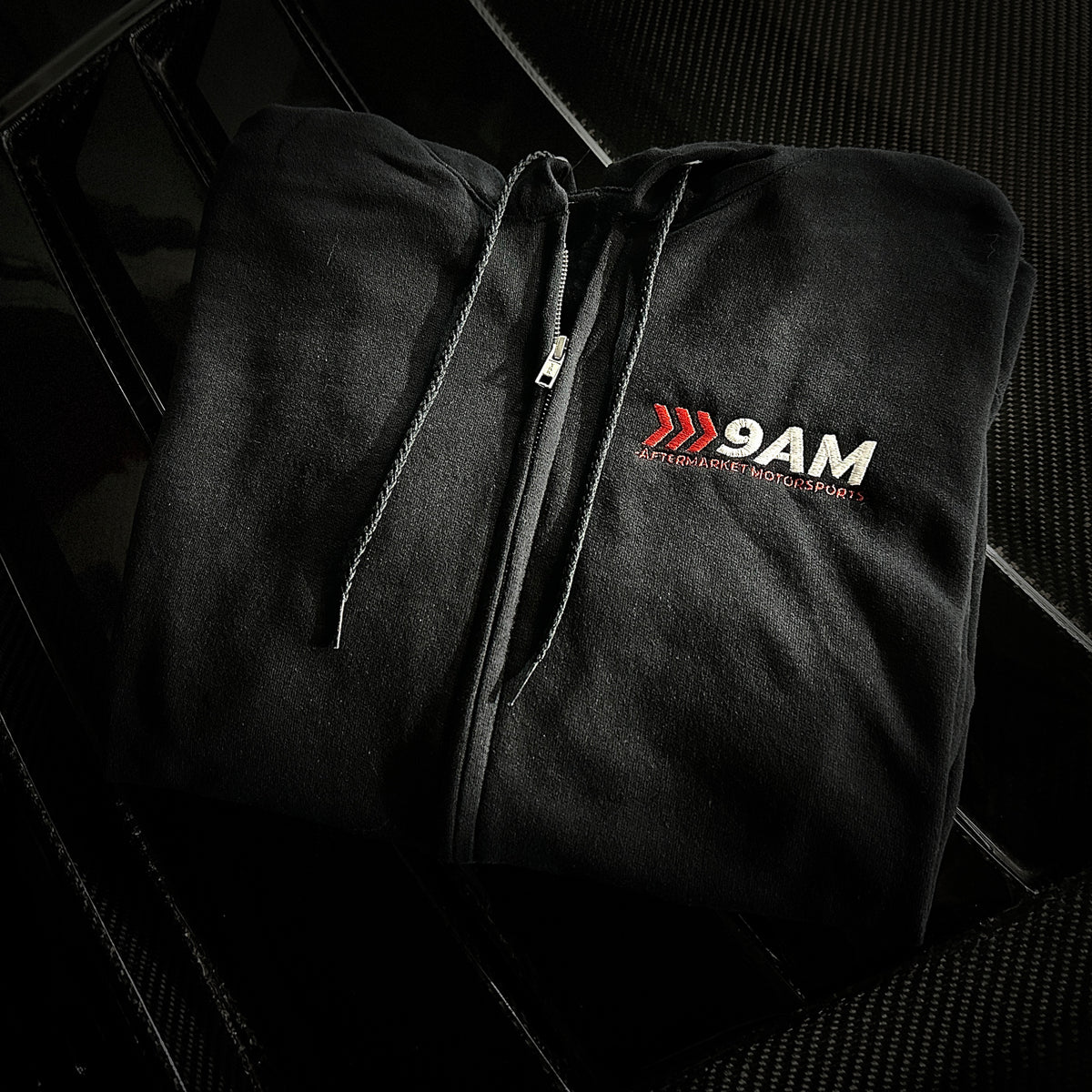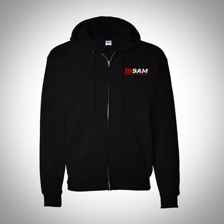 The 9AM 'Lane Merge' Zip Up Hoodie - Embroidered is perfect for keeping you warm on those cold touge nights or trail runs. Medium weight allows for all season comfort and embroidered logo should last as long as a 22re engine.