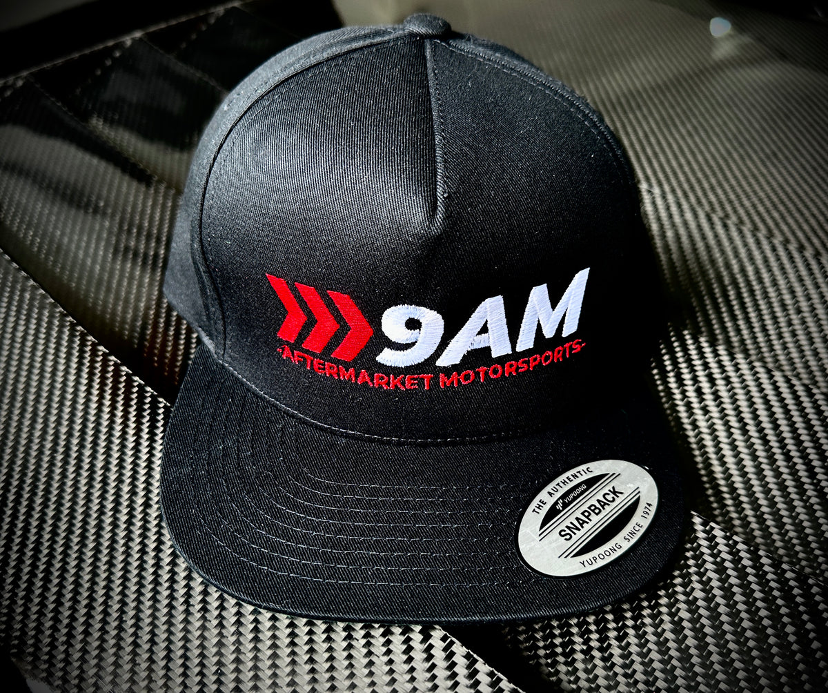 Stay fresh and keep the rays out of your eyes during your next trail or touge run with the 9AM 'LOGO Domepiece'! This highly structured, authentic Yupoong Classic snapback (with green under-brim) features the 9AM logo embroidered and stitched for your pleasure!ย
