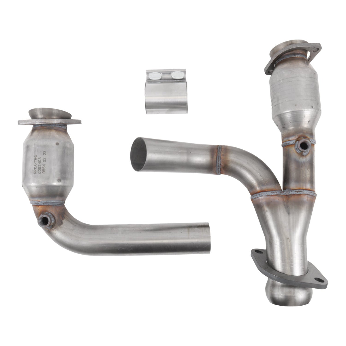 High flow steel substrate catalytic converters are used for better exhaust flow. This mid pipe is designed from 2.5" mandrel bent stainless steel for great exhaust flow.