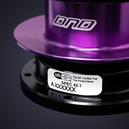 Designed for both professional drivers and enthusiasts, the Hexlock Quick Release features an intuitive lock and release mechanism that can be operated with only one hand. Safety is a top priority, which is why it not only meets, but exceeds SFI standards. It also features horn button compatibility and interchangeable male/female components, which allows the swapping of one steering wheel between multiple cars, or vice versa, while maintaining the same level of reliability. Available in purple, red, tungsten, black and blue.