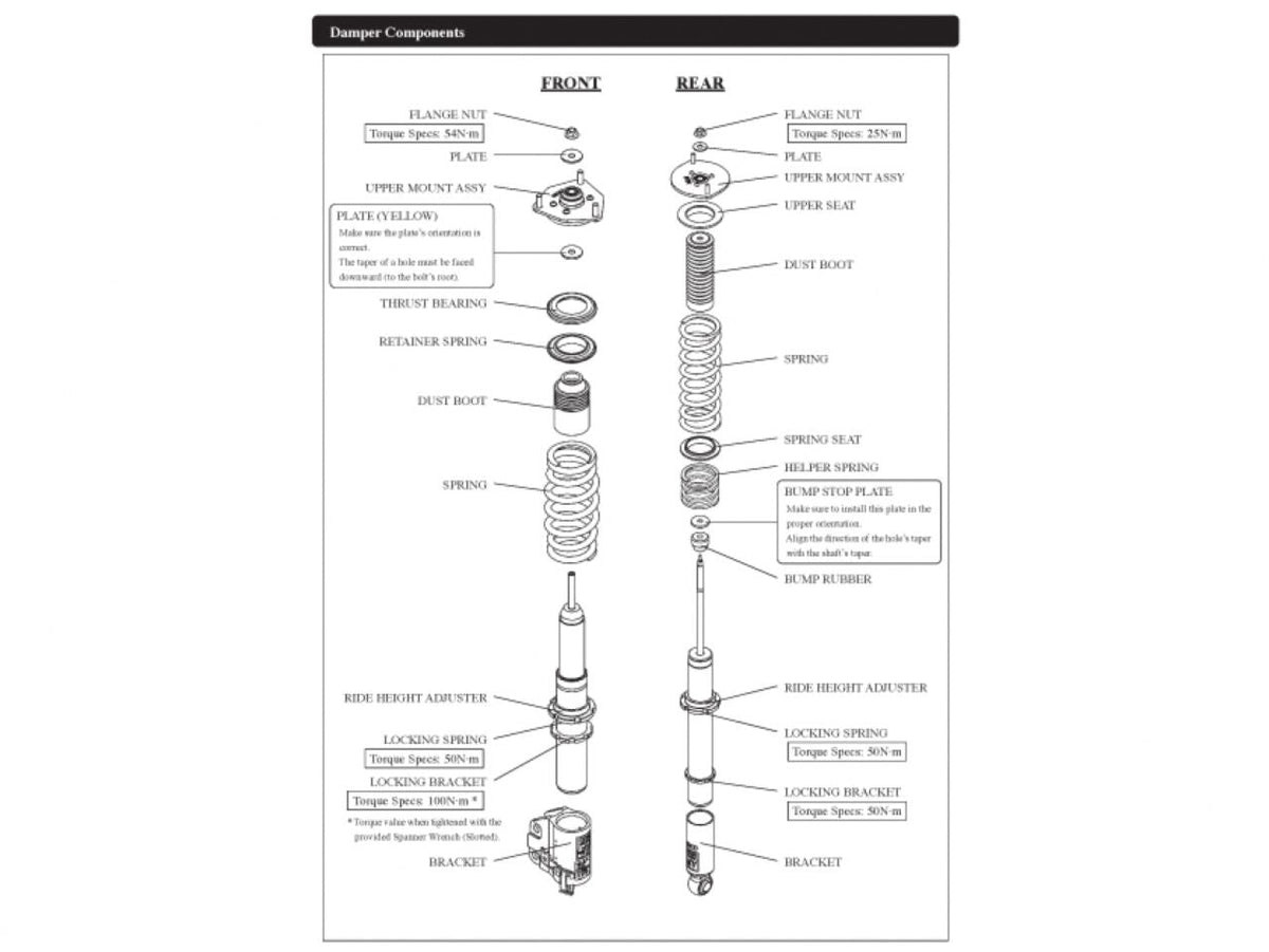 - In order to reduce unsprung weight, bracket, ride height adjusters and lock nuts are made from aluminium. (Not for all vehicles)