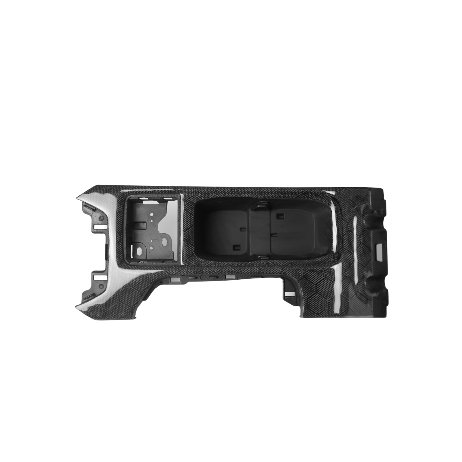 Hand-Laid Carbon Fiber with Clear Coat Finish: Each cup holder is hand-laid with precision to ensure a flawless weave pattern, creating a mesmerizing visual effect. The finishing touch is a clear coat that enhances the natural beauty of the carbon fiber while providing added protection against wear and tear.