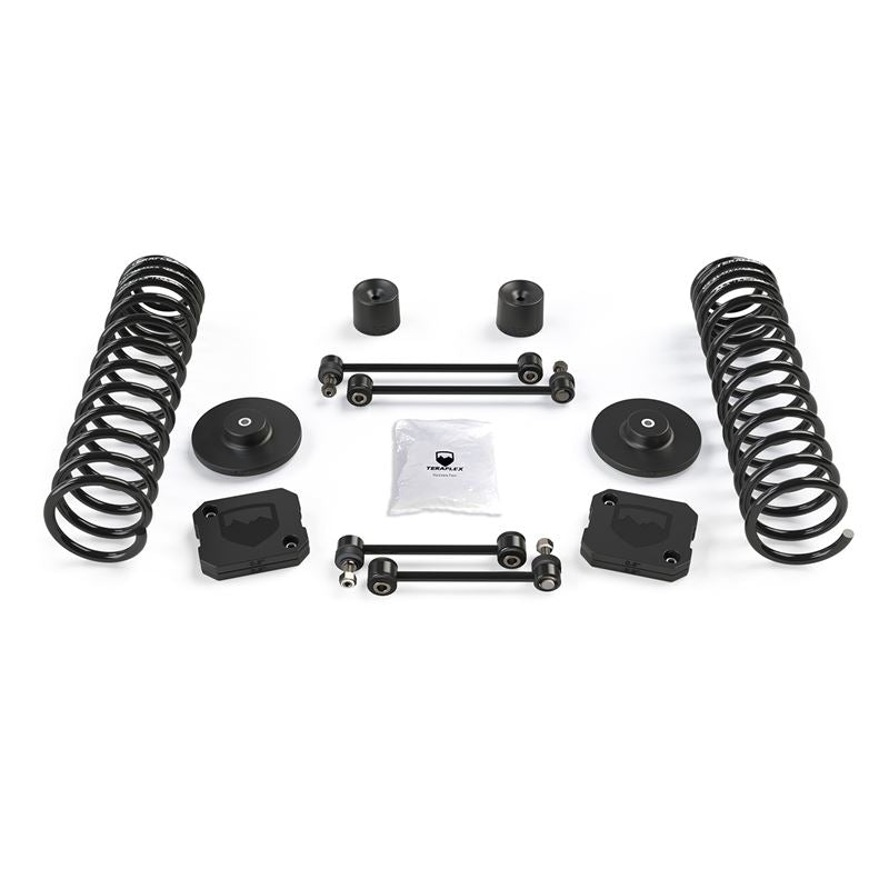 The ultra-simple TeraFlex JT 2.5 inch Coil Spring and Spacer Base Lift Kit comes with the basic parts needed to fit larger tires for increased ground clearance for better off-road capability.