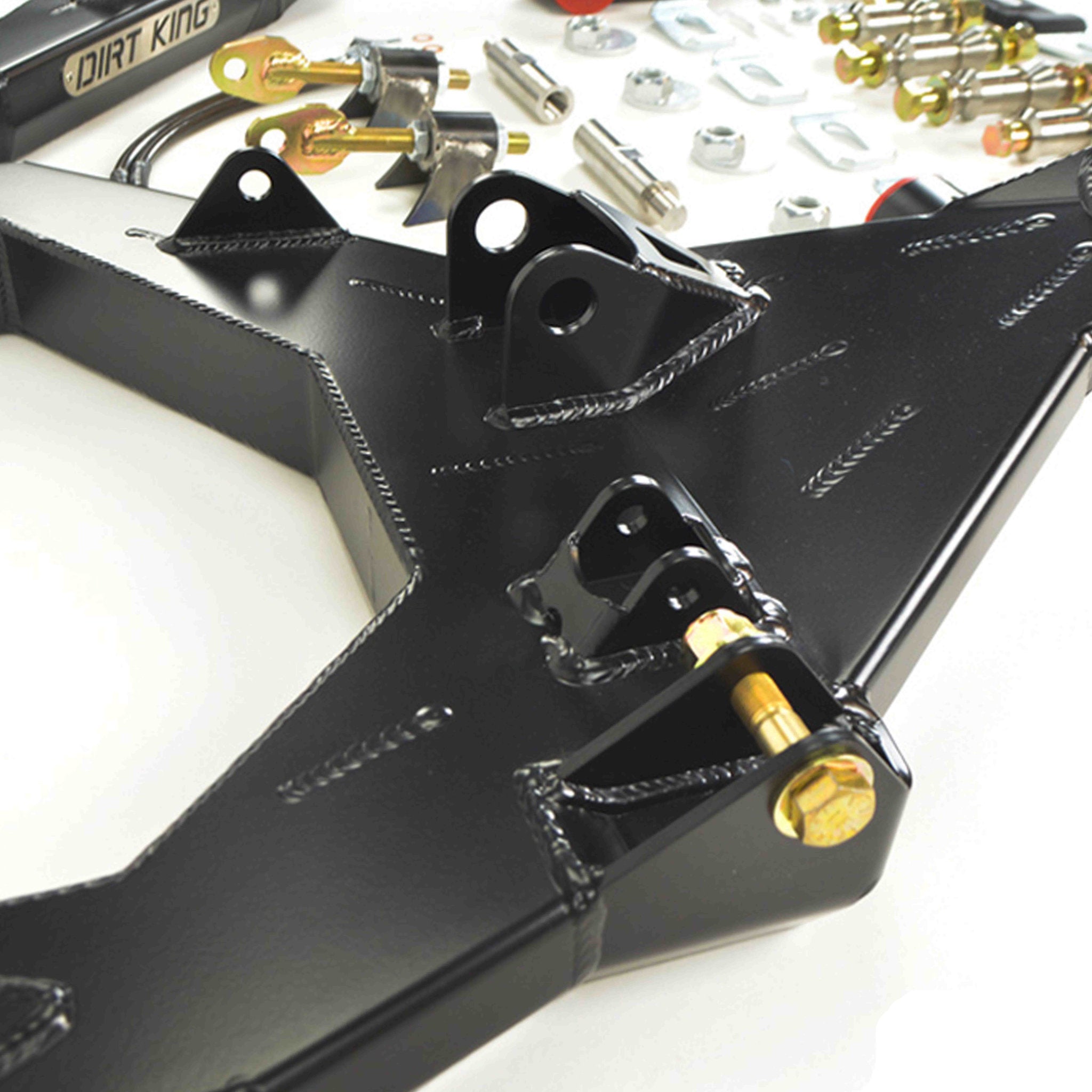 The Dirt King long travel kit was developed to drastically improve the vehicles off-road handling without compromising its day to day driving characteristics. This suspension system allows for 12” of travel and accepts up to a 37” tire. The kit is compatible with 2WD models and 4WD models along with the purchase of extended axle shafts. Our upper and lower arms are designed with 1” stainless steel uniballs for the outer pivots instead of ball joints for strength and increased articulation. The suspension system allows for bypass shocks to be added or can adapt to the factory sway bar. This kit is CAD designed, thoroughly tested, and 100% made in America resulting in a product we’re proud to put our name on!