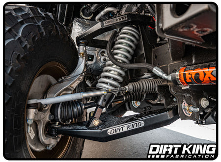 A standout feature of the Dirt King kit is its progressive steering stops, which limit steering angle throughout the suspension cycle. This innovative design prevents premature wear on CV joints and tie rods under full compression or extension. Every kit is CAD designed, thoroughly tested, and proudly manufactured in the USA, ensuring superior quality and performance for your off-road build.