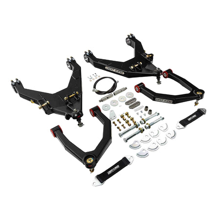This long travel kit is compatible with both 2WD and 4WD models (4WD requires extended axle shafts) and is built using premium components for durability and ease of service. The upper and lower control arms feature heavy-duty Moog ball joints, known for their strength, low maintenance, and easy serviceability. The lower arms are designed with mounting tabs to accommodate coilovers, bypass shocks, bump stops, and limit straps, while retaining the factory inner bushings to ensure a comfortable, factory-like ride quality on pavement with plenty of articulation off-road.