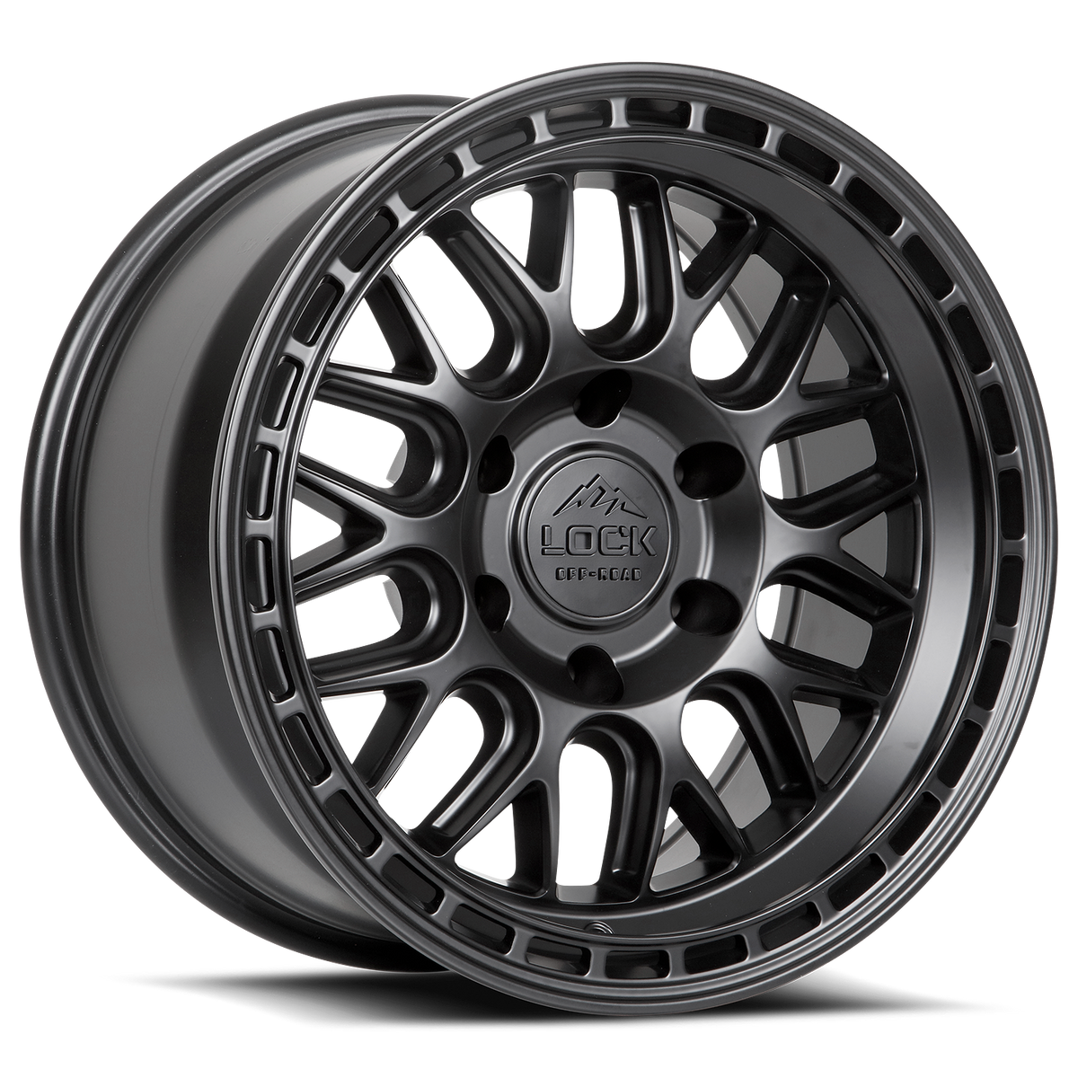 The Lock Off-Road Wheels Onyx model showcases a timeless motorsports mesh pattern revamped for the modern era. Reinforced by chambered inner pocket spokes featuring enhanced lateral support without compromising weight. The Onyx outer lip incorporates an added safeguard to the wheel barrel with a venturi cutout for efficient water drainage and weight reduction. Available in Matte Black, Matte Gunmetal, and Matte Bronze, the TACT-coated finishes offer both visual appeal and durability to withstand extreme elements.