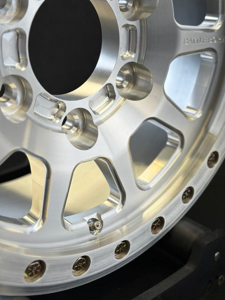The beadlock rings are a Forged 6061-T6 construction for the ultimate combination of strength and lightweight. The beadlock hardware is made up of (24) zinc yellow-chromate plated hex head screws, in Grade 8 steel, 3/8"-16 thread size, and 1-1/4" long. We’ve taken the extra time to drill and tap (48) redundant holes in the lip of the wheel for long term use. The beadlock rings are counterbored to provide the best protection for your bolts.
